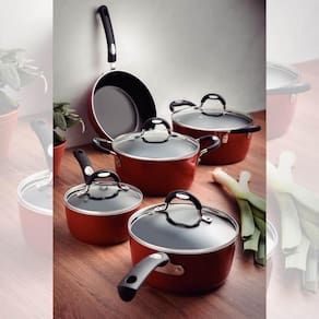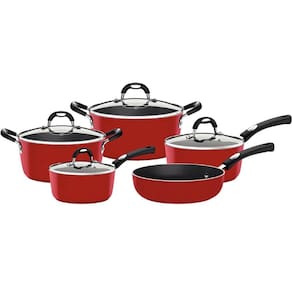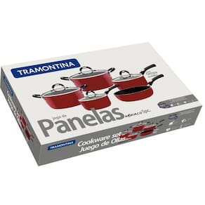 Jogo de Panelas Tramontina Mônaco Vermelho 5pçs Revestimento Starflon Premium e Siliconado.