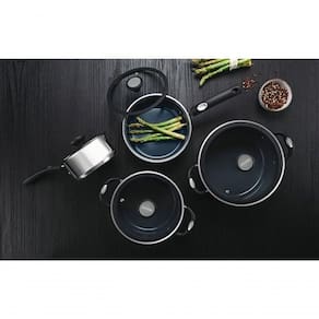 Os entusiastas da culinária concordam: além de ingredientes saborosos, uma refeição deliciosa exige utensílios de qualidade. O Jogo de Panelas Tramontina Solar Ceramic em Aço Inox Fundo Triplo, com revestimento interno cerâmico na cor grafite e cabos/alças de silicone, é a combinação perfeita de praticidade e . Essas peças são altamente duráveis, com revestimento cerâmico que preserva a umidade dos alimentos, resultando em um cozimento com menos gordura, mais rápido e eficiente. O fundo triplo (aço inox + alumínio + aço inox) distribui o calor de maneira uniforme, garantindo um cozimento homogêneo. As alças, cabos e pegadores têm revestimento em silicone antitérmico, proporcionando um manuseio mais confortável e . Todas as peças incluem tampa de vidro com saída de vapor e encaixe perfeito. O conjunto é com fogões a gás, elétricos, vitrocerâmicos e por indução, e pode ser facilmente limpo na máquina de lavar louça.