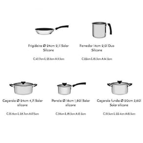 - Caçarola 24cm 4,7l Solar Silicone, Panela 16cm 1,80l Solar Silicone e Caçarola funda 20cm 3,60l Solar Silicone. Registro 001470/2018. 0104 PCN DO