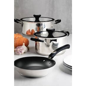 - Cozinhe com elegância, eficiência e durabilidade com o Jogo de Panelas Tramontina Solar Silicone em Aço Inox com Fundo Triplo 5 peças.