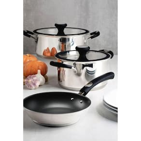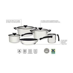 Mais saudável: por ser feita de aço inoxidável, a panela Tramontina não libera nenhum tipo de resíduo nas suas receitas. Fácil de usar: uma panela prática para todas as suas receitas e que faz bonito em qualquer tipo de fogão: gás, elétrico, vitrocerâmico e indução. Tampa de vidro com saída de vapor e encaixe perfeito. As alças, cabos e pegadores tem revestimento em silicone antitérmico tornando a pega mais macia e confortável. Mais durável: o inox Tramontina é uma matéria-prima nobre, resistente e que vai fazer bonito por muito mais tempo na cozinha. Economiza tempo e energia: o segredo está no fundo triplo (aço inox + alumínio + aço inox), que distribui o calor uniformemente, proporcionando um cozimento mais rápido. Por isso, você pode manter o fogo baixo durante todo o preparo e, assim, poupar energia. Fácil de limpar: deixar sua panela brilhando é simples, você só precisa de água, sabão e uma esponja macia. Se preferir, é só colocar na máquina de lavar.