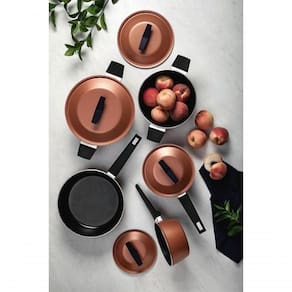Ilumine sua cozinha e eleve a experiência de preparar suas refeições com o conjunto de panelas Tramontina Spezia em alumínio, revestido interna e externamente com antiaderente Starflon Excellent coral, composto por 5 peças. Com uma frigideira funda, duas caçarolas e duas panelas, este conjunto oferece qualidade e praticidade para suas aventuras culinárias. Além de proporcionar um toque de modernidade à sua cozinha, o revestimento antiaderente Starflon Excellent garante que os alimentos não grudem, simplificando tanto o preparo quanto a limpeza. As tampas de alumínio, com cabos e alças de baquelite antitérmicos revestidos com soft-touch, garantem e conforto durante o manuseio, mesmo quando as panelas estão quentes. Este conjunto de panelas é extremamente versátil, podendo ser utilizado em fogões a gás, elétricos e vitrocerâmicos (resistência elétrica), proporcionando tranquilidade quanto à sua compatibilidade. Escolha a linha Tramontina Spezia e desfrute de panelas duráveis, práticas e cheias de estilo, transformando suas receitas em verdadeiras obras de arte na cozinha!