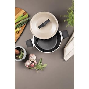 Corpo de alumínio com espessura de 3 mm que proporciona cozimento rápido e uniforme.Revestimento interno e externo de antiaderente Starflon Excellent carbono que não gruda, é fácil de limpar, mais durável e não é prejudicial à saúde, pois é livre de PFOA.Cabos e alças de baquelite com acabamento soft-touch: oferecem resistência e conforto.Tampas de alumínio: fácil limpeza e leveza no manuseio. Pegadores de nylon.Para maior durabilidade não utilize em máquinas de lavar.Fundo de indução: mais segurança e rapidez no cozimento!Contato indutivo 15,0 centímetros.Pode ser utilizada nos fogões: gás, elétrico, vitrocerâmico - resistência elétrica e indução.