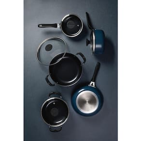 Jogo De Panelas Tramontina Tunis 5pçs Azul Sua cozinha transformada e o preparo das suas refeições muito mais prático, com o jogo de panelas Tramontina Tunis em alumínio com revestimento interno cerâmico e externo siliconado azul meditarrâneo 5 peças. Perfeito para lhe acompanhar diariamente, ele é composto por duas panelas, duas caçarolas e uma frigideira funda, todas produzidas em alumínio com revestimento interno cerâmico. Seu utensílio resiste à máquina de lavar louças, embora diferentes detergentes para uso nestas máquinas podem ser mais agressivos e acelerar o desgaste de seu utensílio e reduzir as propriedades de antiaderência Elas cozinham os alimentos de maneira rápida e uniforme, garantindo um preparo eficiente das suas receitas. Externamente as peças são siliconadas, tem fundo de indução e contam com cabo metálico protegido por silicone, que oferece maior segurança e conforto no manuseio. Elas ainda são versáteis e podem ser utilizadas em fogões à gás, elétricos, de indução e vitrocerâmicos resistência elétrica . Conte com a Tramontina e tenha uma rotina muito mais prática e eficiente CONTEÚDO: Frigideira Funda : 24cm - 2,9 litros Panela: 16cm - 1,3 litros Panela: 18cm - 2 litros Caçarola: 20cm - 2,9 litros Caçarola: 24cm - 4,8 litros