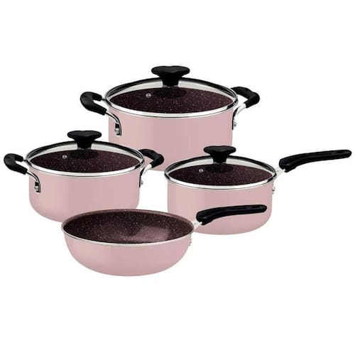 O jogo de panelas Tramontina Tunis em alumínio com revestimento interno cerâmico e externo siliconado rosa trufado, composto por 4 peças, é a escolha ideal para quem busca praticidade e estilo na cozinha. Com produção em alumínio, estas panelas garantem um cozimento rápido e uniforme dos alimentos, tornando suas tarefas culinárias mais eficientes. O revestimento interno cerâmico antiaderente evita que os alimentos grudem, facilitando a limpeza, enquanto o revestimento externo siliconado adiciona um toque de elegância. Os cabos metálicos com proteção de silicone não aquecem, proporcionando e conforto durante o manuseio. Com fundo de indução, este conjunto pode ser utilizado em fogões a gás, elétricos, de indução e vitrocerâmicos (resistência elétrica), oferecendo versatilidade para diversas configurações de cozinha. O jogo inclui uma panela, duas caçarolas e uma frigideira funda, perfeitos para preparar uma variedade de receitas e tornar seu dia a dia na cozinha mais prático e encantador. Invista no jogo de panelas Tramontina Tunis e transforme suas refeições com qualidade, durabilidade e um toque de sofisticação!