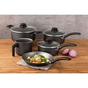 Os cabos e alças em baquelite antitérmico garantem segurança durante o manuseio. Versáteis, podem ser utilizadas em fogões a gás, elétricos e vitrocerâmicos, e são compatíveis com lava-louças.