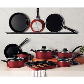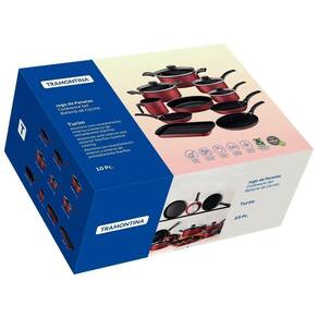 Componente: ; Assadeira Rasa 28 cm 2,0 L, ;Assadeira redonda 22 cm 1,7 L, ; Caçarola 18 cm 2,0 L, ; Caçarola 20 cm 2,8 L, ; Fervedor 12 cm 1,2 L, ; Frigideira 16 cm 0,4 L, ; Frigideira 20 cm 0,8 L, ; Panela 14 cm 0,8 L Turim, ; Panela 16 cm 1,4 L, ;Panquequeira/Tapioqueira 22 cm 0,6 L.
