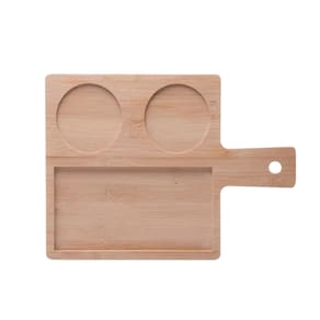 • 1 Bandeja de Bambu 2 Petisqueiras de Vidro 2 Colheres de Bambu 1 Tábua Ladrilho
