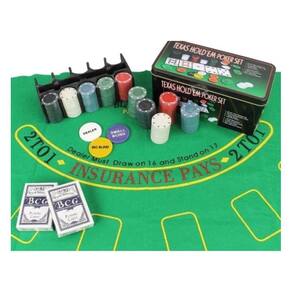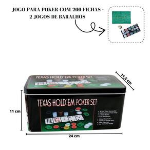 JOGO PARA POKER 200 FICHAS NUMERADAS NA LATA 02 BARALHO E TOALHA - IM42055.