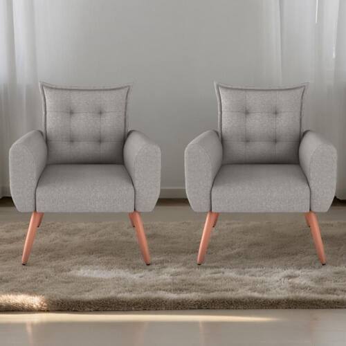 Jogo De Poltronas Decorativas Park Linho Chumbo - Cinza