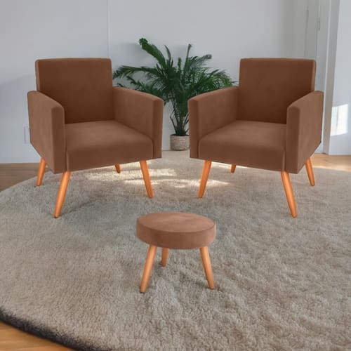 Conjunto de Poltronas e Puff é o ápice do conforto e do estilo. Com um design unico, combina elegância e funcionalidade, tornando-se o complemento perfeito para qualquer ambiente.