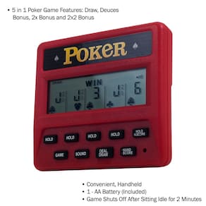 - 5 JOGOS EM 1 — Este jogo portátil apresenta cinco jogos em um dispositivo de bolso. Ele vem com jogos clássicos de cassino eletrônico, como Draw, Deuces, Bonus, 2x Bonus e 2x2 Bonus.