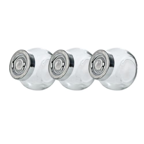 O jogo de 3 potes de vidro possui aproximadamente 200ml de capacidade, 8cm de altura e 6cm de largura. O pote é feito em vidro e possui uma tampa de rosca feita em plástico na cor prateada. Ideal para armazenar temperos, guloseimas ou até mesmo para servir de enfeite com muita elegância.