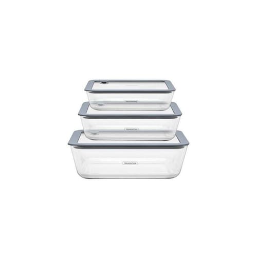 Organização e cuidado com os alimentos começam pelos detalhes certos. O conjunto de potes de vidro Tramontina Vittra retangulares com tampa de silicone hermética oferece a solução perfeita para conservar alimentos com mais e eficiência. Composto por três tamanhos diferentes, ele permite armazenar porções , mantendo tudo sempre fresco e protegido. O sistema de vedação evita vazamentos e odores indesejados, e a estrutura empilhável ajuda a otimizar cada centímetro do armário ou da geladeira. Compatíveis com micro-ondas, forno (sem tampa), freezer e lava-louças, esses potes unem resistência e praticidade em uma única escolha. Ideal para quem busca manter a rotina organizada sem abrir mão da qualidade.