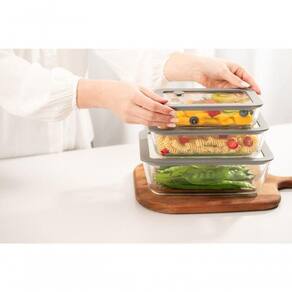 - Com tampas de vidro com borda em silicone, os potes tem fechamento hermético perfeito e garante que seus alimentos ficarão frescos por mais tempo, sem risco de contaminação externa.