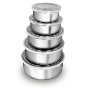 Jogo De Potes Em Aço Inox Com Tampa Plástica 5 Peças Ke Home