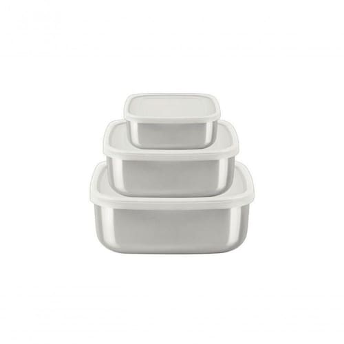 Proporcionar um de qualidade é um verdadeiro presente para o dia a dia. O Jogo de Potes Tramontina Quadrados em Aço Inox com Tampa Plástica, composto por 3 peças da linha Freezinox, oferece beleza e sofisticação para o seu diário. Os potes são fabricados em aço inoxidável, um material altamente durável que mantém suas características , preservando a beleza, a higiene e a durabilidade do produto. Seu design limpo, sem cantos, facilita a limpeza. Com acabamento fosco, as tampas possuem vedação perfeita para a conservação dos alimentos. Ideais para preparar e armazenar alimentos, os potes podem ser colocados na geladeira ou no freezer, e são seguros para a máquina de lavar louça, tornando-os lindos e super práticos.