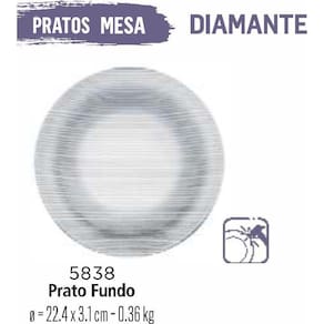 Jogo de prato diamante 12 pratos vidro fundos sopa caldos Prato diamante de vidro fundo 23cm sopa caldos Jogos de jantar, para dar um toque de sofisticação e praticidade para seu dia a dia e seus eventos. Produtos exclusivos da nadir figueiredo, conhecido pela alta resistência tanto no restaurante ou em casa.Faça sua escolha para degustar os melhores momentos. A nadir figueiredo oferece uma linha de pratos para cada tipo de degustação e momento. Temos diversas modelos para atender a sua necessidade, temos preços especiais, pra embalagens de 6, 12 ou 24 copos. Temos pratos com peso controlado, para self-service Limite de envio 48 peças, em razão do peso