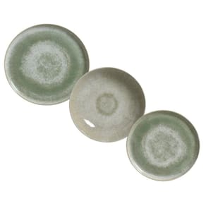 Jogo de Pratos 18 Peças Bio Moss Porto BrasilO Stoneware, assim como a faiança feldspática e porcelana, é um material cerâmico. O Stoneware Porto é um material inovador e sustentável, onde a combinação das melhores matérias primas naturais, unido a um processo único de queima e acabamento manual, entregam um produto com características superiores em termos de qualidade e resistência, estando em conformidade com as principais normas mundiais. Além disso, conseguimos proporcionar peças exclusivas, onde alterações de formas, relevos e variações de cores são efeitos característicos dos produtos, evidenciando assim sua originalidade e autenticidade.