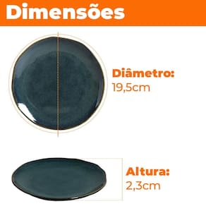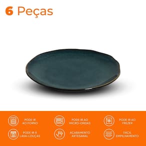 6 Pratos: 19,5cm de diâmetro x 2,3cm de altura