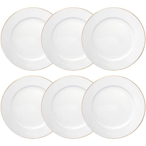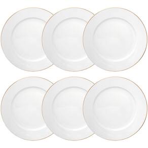 Jogo de Pratos de Sobremesa Porcelana Royal Branco Fio de Ouro 20cm 6 peças - Hauskraft