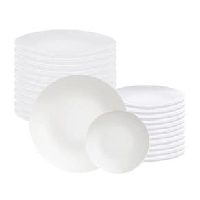 O Conjunto de Prato Raso e Sobremesa Porcelana 24Pç Tramontina é composto por 12 pratos rasos e 12 pratos de sobremesa, feitos em porcelana branca de alta qualidade. O prato raso tem 25 cm de diâmetro, enquanto o prato de sobremesa possui 19 cm de diâmetro. Ambos possuem um design minimalista inspirado nas artes visuais.