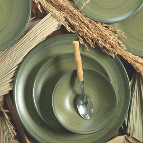 Jogo De Pratos Fundo Cerâmica 6 Pcs 25Cm Kya Olive Alleanza