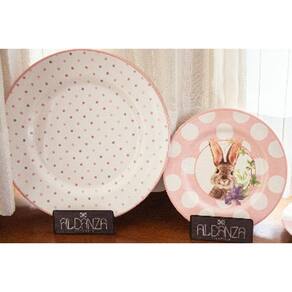 Jogo de pratos raso poa rosa 6 peças alleanza ceramica 1lin - jogo com 6 pratos raso jantar coelha amy medindo 29,5 cm diâmetro - modelo: coelha amy - - alleanza cerâmica