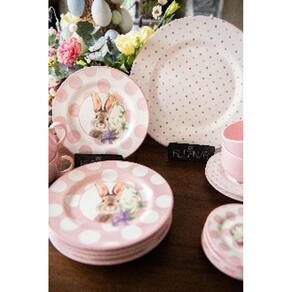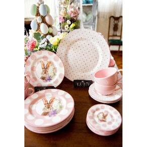 que tal reunir a família para uma gostosa refeição numa mesa super decorada essa é a proposta do jogo de pratos coelha amy da alleanza cerâmica. Que utiliza exclusivamente materiais de alto padrão. Essa coleção e elaborada em cerâmica faiança, uma massa que confere maior resistência ao impacto e deixa as peças prontas para encarar o dia a dia, e mais essas peças podem ir ao forno de microondas e à lava-louças. Sirva suas melhores receitas com esta estampa e arrase na decoração da sua mesa com esse conjunto suas receitas vão fazer ainda mais sucesso leve o seu agora