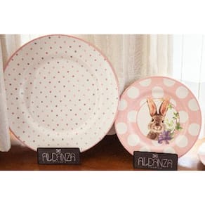 que tal reunir a família para uma gostosa refeição numa mesa super decorada essa é a proposta do jogo de pratos coelha amy da alleanza cerâmica. Que utiliza exclusivamente materiais de alto padrão. Essa coleção e elaborada em cerâmica faiança, uma massa que confere maior resistência ao impacto e deixa as peças prontas para encarar o dia a dia, e mais essas peças podem ir ao forno de microondas e à lava-louças. Sirva suas melhores receitas com esta estampa e arrase na decoração da sua mesa com esse conjunto suas receitas vão fazer ainda mais sucesso leve o seu agora