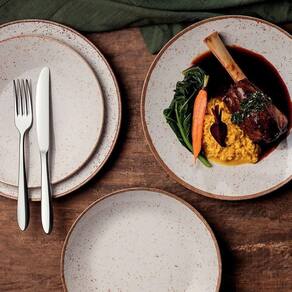 Jogo de Pratos Rústico 12 Peças Porcelana 28 cm com Talheres Laguna Tramontina