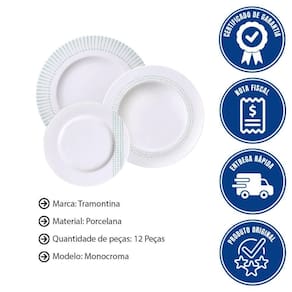 JOGO DE PRATOS TRAMONTINA MONOCROMA EM PORCELANA DECORADA 12 PEÇAS - 96589053 Marca: Tramontina Modelo: Monocroma 12 Peças 96589/053