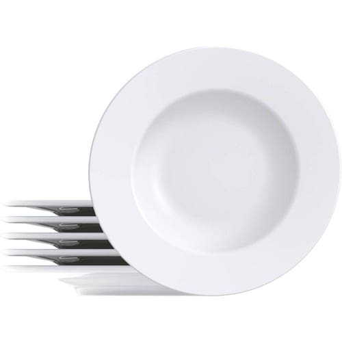 Garantia: 90 dias / Peso: 4,092kg / Cor: branco / Referência: 7908538103213 Dimensões de cada: 27cm (D) x 2,4cm (A); Material: porcelana; Conteúdo: 6 peças; Formato: aba larga; Coleção: Maria Augusta; Tipo: rasos.