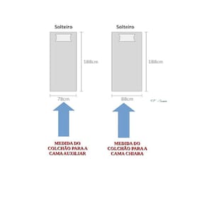 - Medidas do colchão para cama auxiliar: 188 x 78 cm