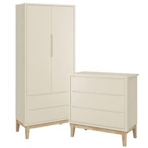 Jogo de Quarto Classic Guarda Roupa 2 Portas e Cômoda 3 Gavetas com Pés Madeira Natural - Reller Móveis - Bege