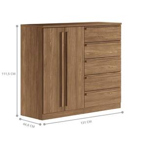 A Cômoda conta com cinco gavetas amplas para organizar todas suas roupas, duas portas e um cabideiro.