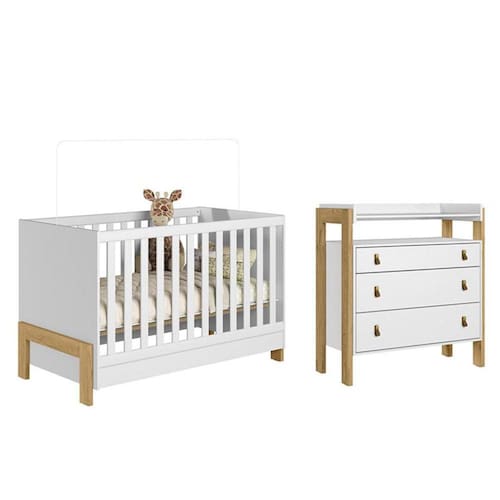 Jogo de Quarto Fantasia c/ Cômoda e Berço Branco - Qmovi