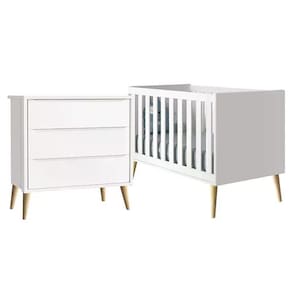 O Jogo de Quarto Infantil Theo conta com design moderno, seus pés em madeira estilo retrô dão um toque de charme e elegância ao ambiente. É composto por uma Cômoda com amplo espaço interno para roupinhas e acessórios ficarem sempre organizados e um Berço que se transforma em mini cama, acompanhando o crescimento do bebê e auxiliando na transição do berço para caminha.