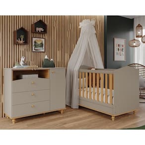Tonalidade: Multicolorido | Produto: Conjunto de Quarto | Regulamentado pelo Inmetro: Sim | Certificação do Inmetro: 03295/2021 | Fabricante: Permóbili Baby Cor: Fendi/Nature