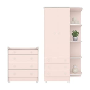Jogo De Quarto Infantil Doce Sonho Guarda Roupa 2 Portas E Cômoda Trocador Rosa Acetinado Com Pés - Qmovi Rosa Acetinado Jogo de Quarto Infantil Doce Sonho Guarda Roupa 2 Portas e Cômoda Trocador com Pés - Qmovi O Jogo de Quarto Infantil Doce Sonho, composto por um Guarda Roupa e uma Cômoda, é a escolha perfeita para ambientes compactos. O guarda-roupa, com 2 portas e 3 gavetas profundas, mais uma cantoneira prática, organiza e embeleza o espaço. A cômoda, além de suas 4 gavetas, inclui um trocador e sistema antitombamento, oferecendo funcionalidade e . Ambos os móveis trazem puxadores em forma de estrela, adicionando um toque de magia ao quarto do bebê. Guarda Roupa Infantil 2 Portas e 3 Gavetas Doce Sonho com Nicho e Pés - Qmovi - Estrutura em MDP - Pintura UV atóxica - 2 Portas - 3 Gavetas - Corrediças metálicas - Puxadores em forma de estrela - Prateleiras - Cabideiro - Pés em PVC - Maior organização e praticidade