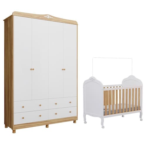 Jogo de Quarto Infantil Elô Guarda Roupa e Berço - Móveis Peroba
