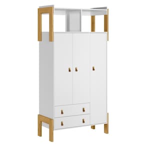 Guarda Roupa Infantil Fantasia 3 Gavetas e 2 Gavetas com Nicho - Qmovi Estrutura em MDP Pintura UV 3 Portas Dobradiças metálicas 2 Gavetas Corrediças telescópicas Puxadores inspirados no couro em TPU Nichos e prateleiras Cabideiro Pés em MDF de 25mm Suporta até 55Kg distribuídos
