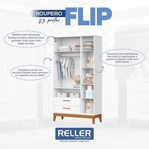 Guarda Roupa Infantil Flip 3 Portas e 2 Gavetas - Reller Móveis