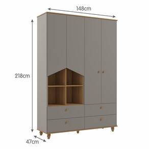 Dimensões: Tamanho do Guarda-Roupa (L x A x P): 148 x 218 x 47 cm Tamanho do Berço (L x A x P): 78 x 96,5 x 133,4 cm