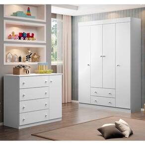 Jogo De Quarto Infantil Guarda Roupa E Cômoda Ellie P04 Branco - Mpozenato