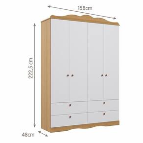 Dimensões: Tamanho do Guarda-Roupa (L x A x P): 158 x 222,5 x 48 cm Tamanho da Cômoda (L x A x P): 119,5 x 108,6 x 48 cm