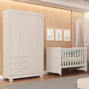 Um conjunto funcional e elegante, pensado para oferecer praticidade, conforto e segurança no quarto do bebê. O Guarda Roupa Infantil Zaki conta com 4 portas e 3 gavetas amplas, estrutura em MDF com pintura UV atóxica, corrediças telescópicas e puxadores em MDF. Possui cabideiro metálico e pés em PVC, garantindo resistência e durabilidade. O Berço Evolution 4 em 1 pode ser utilizado como mini berço, berço, sofá-cama e mini cama, acompanhando cada fase do crescimento da criança. Fabricado em MDF com pintura UV, possui 3 regulagens de altura do estrado, rodízios em gel (2 com trava e 2 sem trava) e é certificado pelo INMETRO, proporcionando praticidade e segurança.