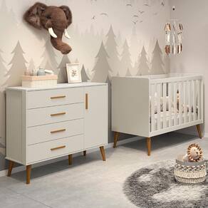 O Jogo de Quarto Infantil Isis é composto por uma Cômoda 1 Porta e um berço. A Cômoda Infantil Isis 1 Porta e 4 Gavetas, possui design moderno um amplo espaço nas gavetas para guardar as roupinhas do bebê dobradas. Produzida 100% MDF, garantindo mais durabilidade e resistência ao produto, as gavetas e a porta possuem puxadores em madeira ideal para mais conforto, praticidade e beleza. E o Berço Americano Isis é ideal para quem busca um berço lindo para a chegada do seu bebê. O berço se enquadra em todos os termos de qualidade, segurança e durabilidade do produto, pois possui certificação pelo INMETRO. A elegância do estilo retrô aliada ao conforto.