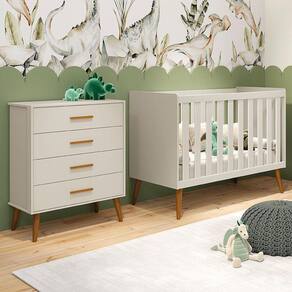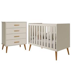 Jogo de Quarto Infantil Isis Cômoda 4 Gavetas e Berço - Reller Móveis - Bege Claro
