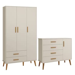 Jogo De Quarto Infantil Isis Guarda Roupa 3 Portas E Cômoda 1 Porta Areia - Reller Móveis Areia - Bege